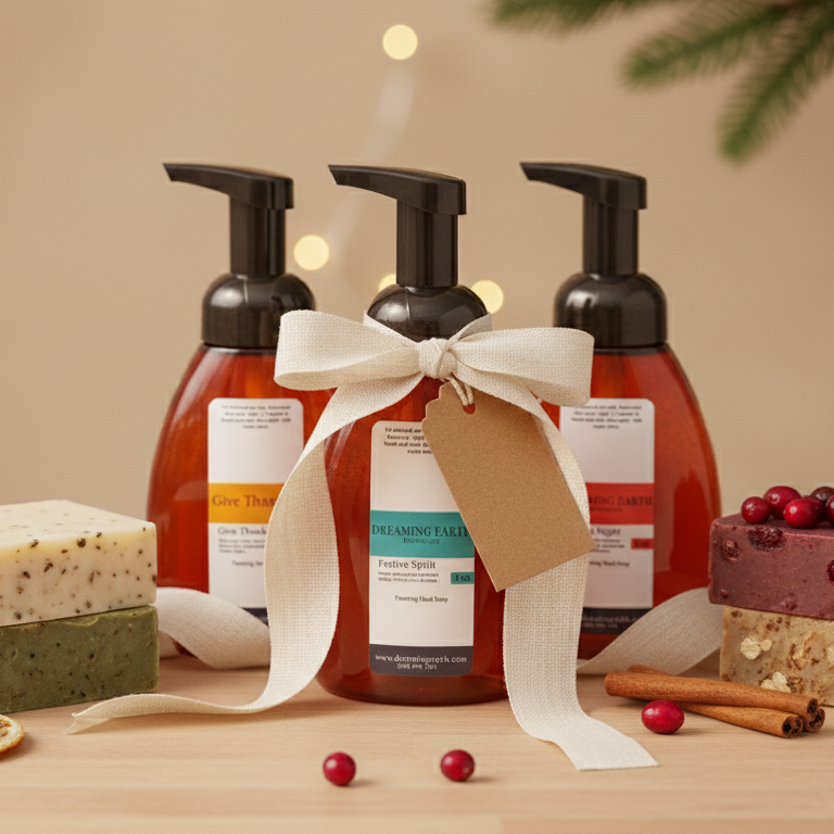 Turn everyday handwashing into a seasonal ritual. This Holiday Foaming Soap Bundle brings together three Dreaming Earth Botanicals favorites—one for gratitude-filled gatherings, one for bright holiday cheer, and one for quiet winter nights. Naturally scented with pure essential oils and made with a gentle, moisturizing foam that leaves hands clean, soft, and comforted all season long.