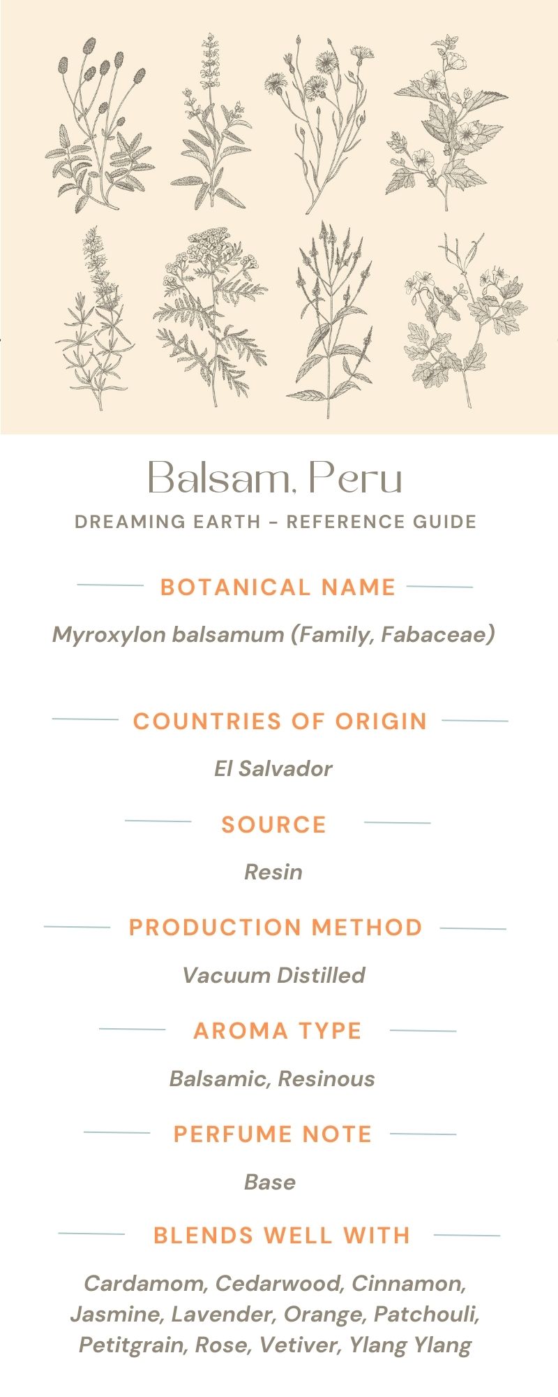 Energetically, Balsam Peru is often described as both strengthening and stabilizing, with a comforting presence that can feel calming during times of stress, yet gently stimulating when emotional energy feels low. Its aroma creates an inviting, cozy atmosphere—especially beautiful in evening blends and romantic perfumes.